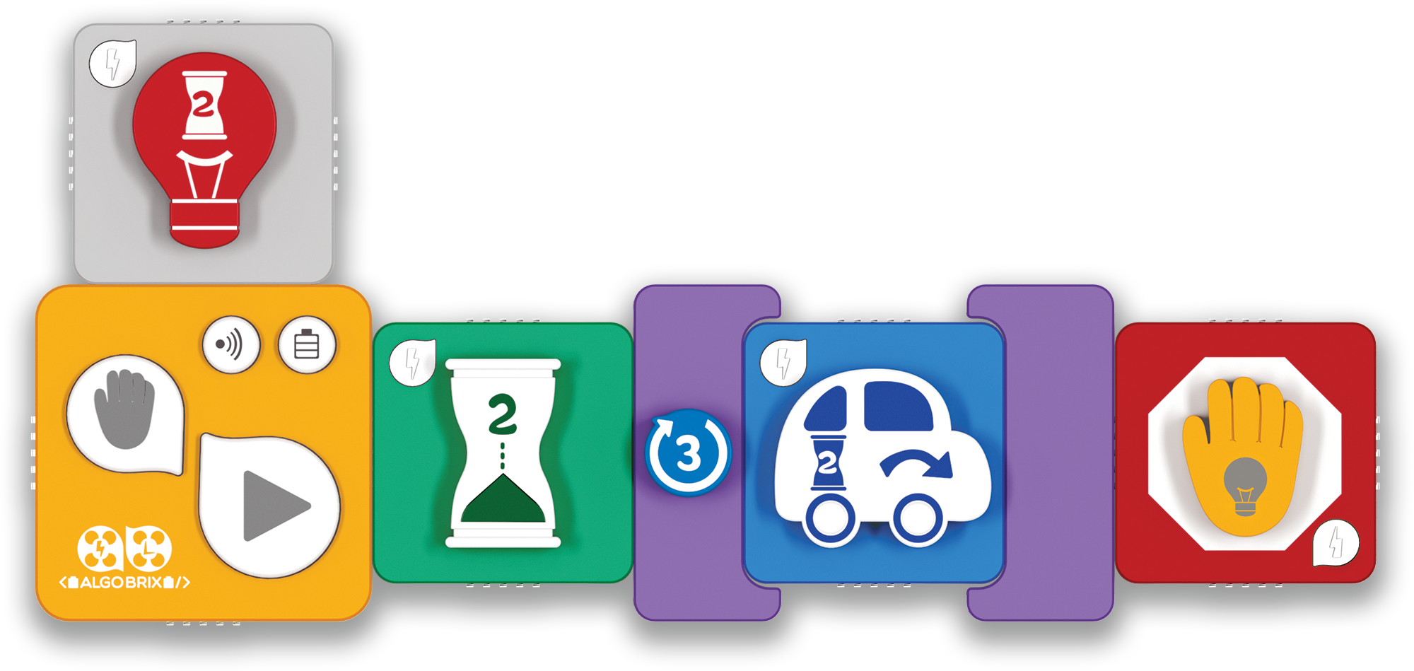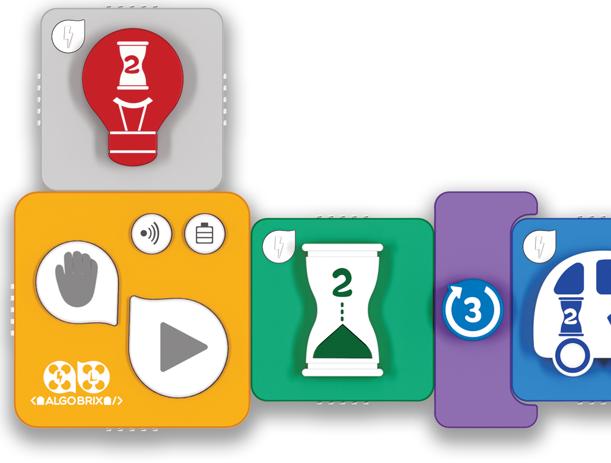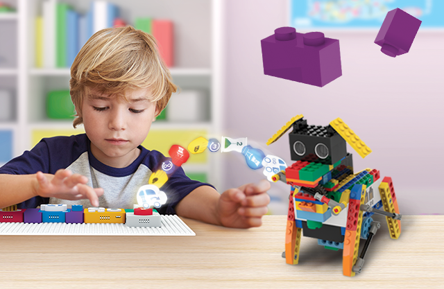 Благодаря осязаемому языку кодирования Algobrix® дети легко учатся программированию. Вначале ученики строят робота из конструктора и после этого программируют его последовательность действий с помощью осязаемых блоков функций и параметров. Наконец, нажав кнопку Play, робот выполнит команду.